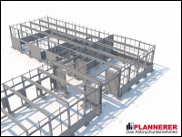 Maschinen- , Werk- und Lagerhalle Fa. Plannerer BAIIBauabschnitt II für Maschinen- , Werk- und Lagerhallen der Fa. Plannerer, Pullenreuth Halle in FT-Bauweise, ca. 30x90m mit Stahl-Zwischenbau zum BA I